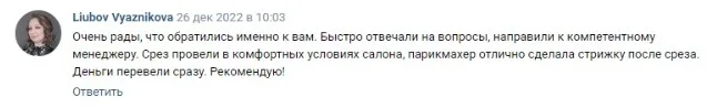 Вы получите бесплатную профессиональную стрижку в комфортных условиях. Наши мастера бережно обращаются с волосами и уделяют внимание всем ваши пожеланиям, чтобы вы чувствовали себя уверенно с новой длиной.
